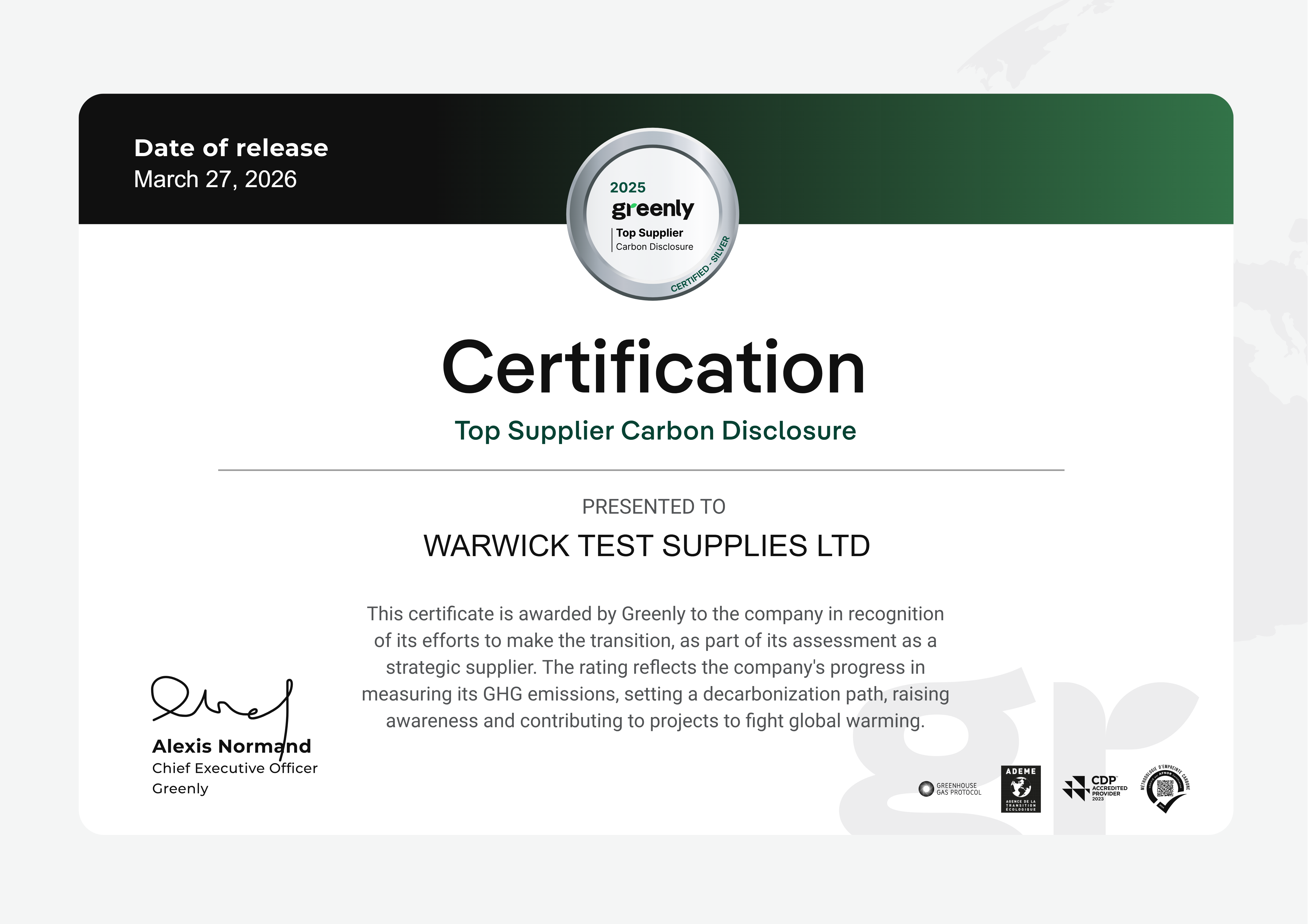 We are registered as a supplier on Greenly and have acheived a Silver top supplier rating.