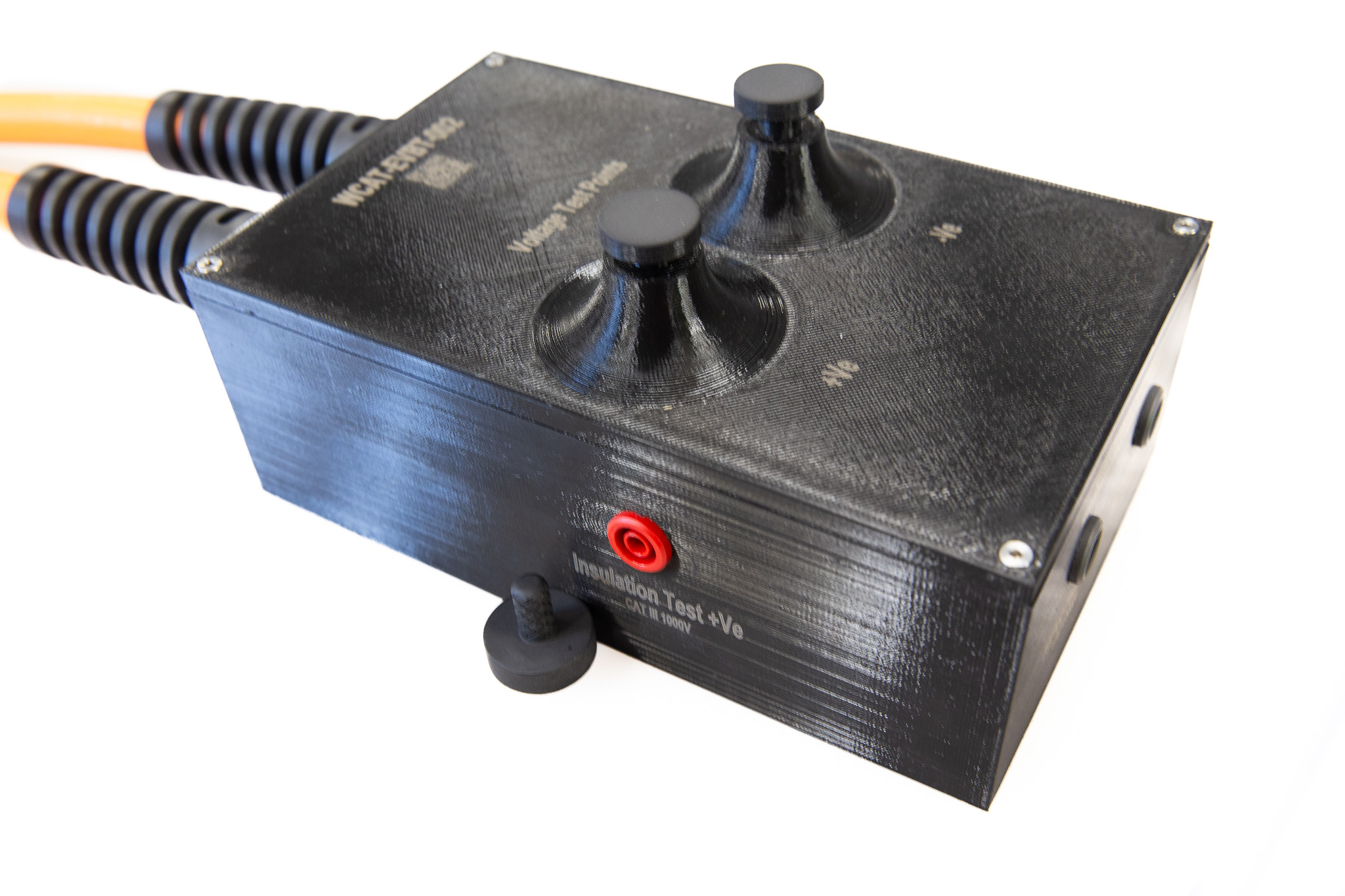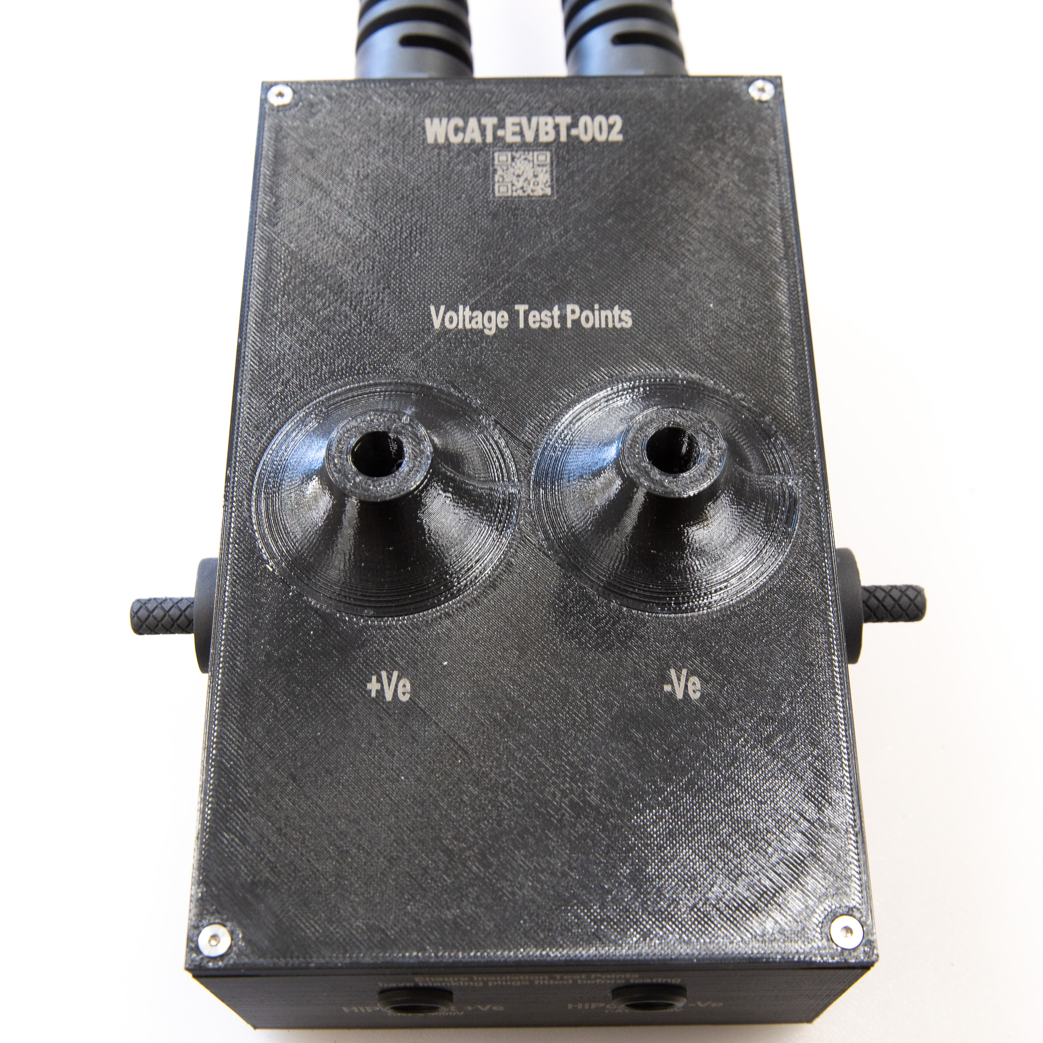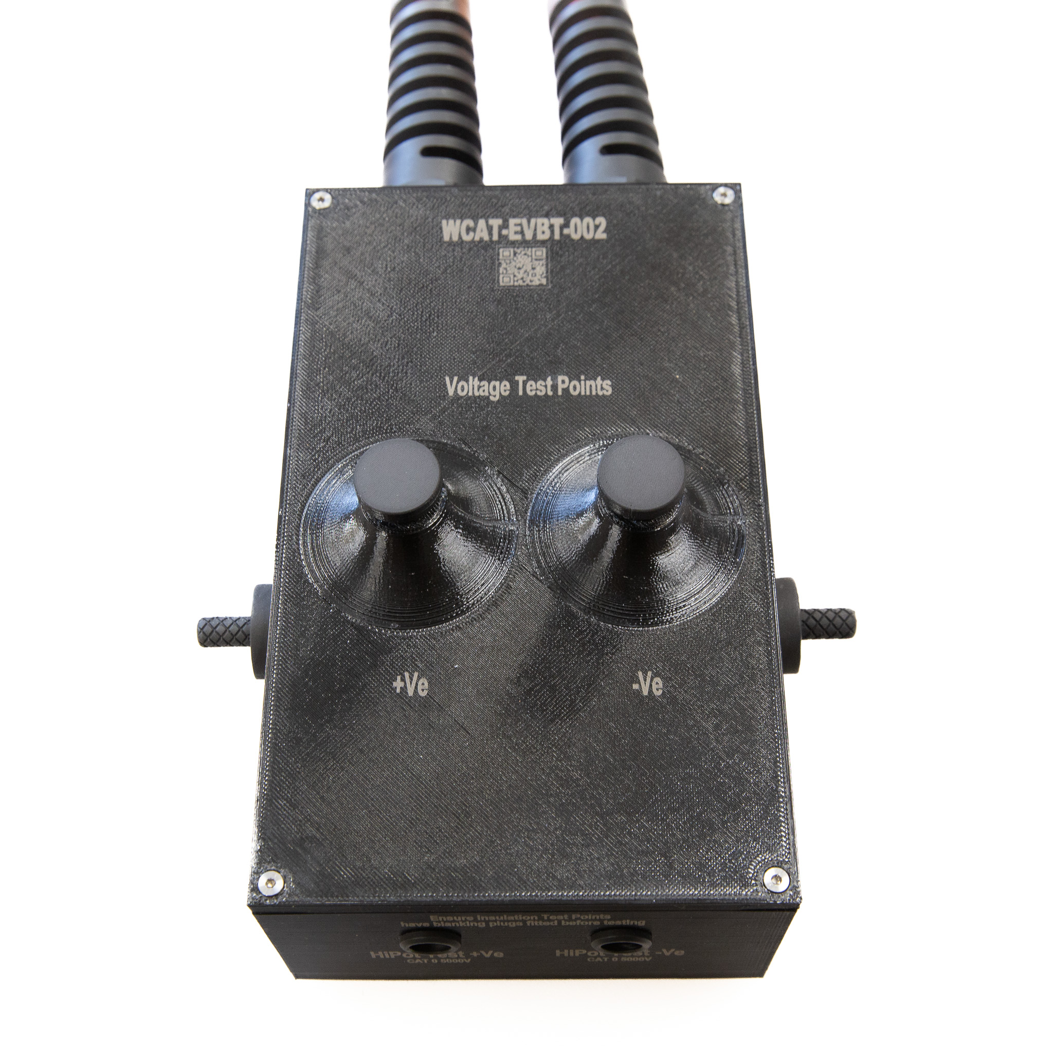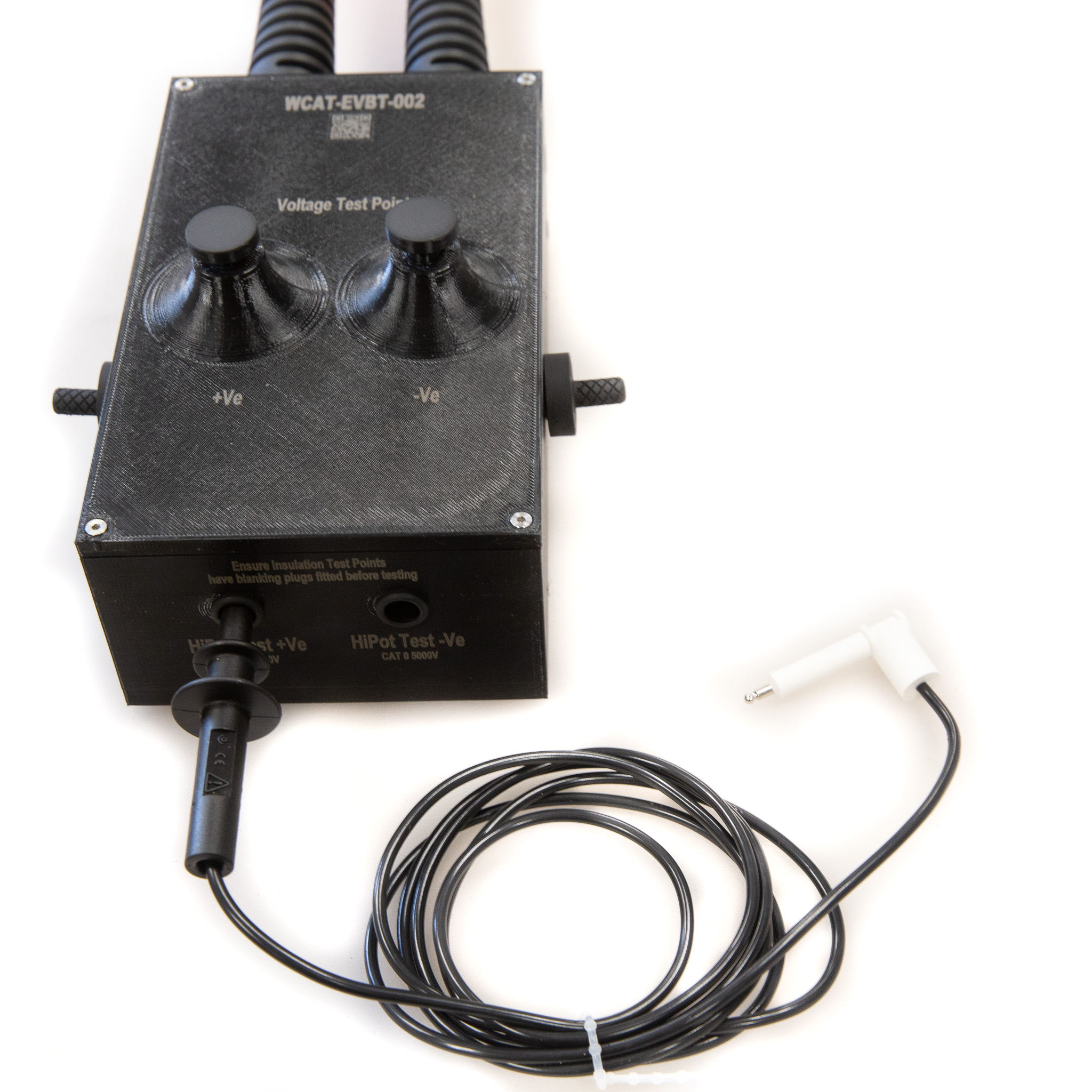 The W-CAT-EVBT models are a specially designed test box to enable remote electrical safety testing of either a 50V, 300V or 600V battery pack with specific connectors.